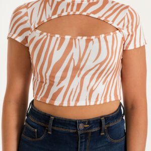 Crop Top Mujer Apertura Cebra Modal Manga Corta